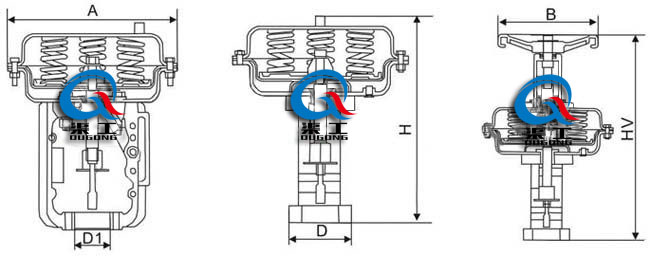 | ZHA/B多彈簧氣動薄膜執(zhí)行器 主要外形圖 |